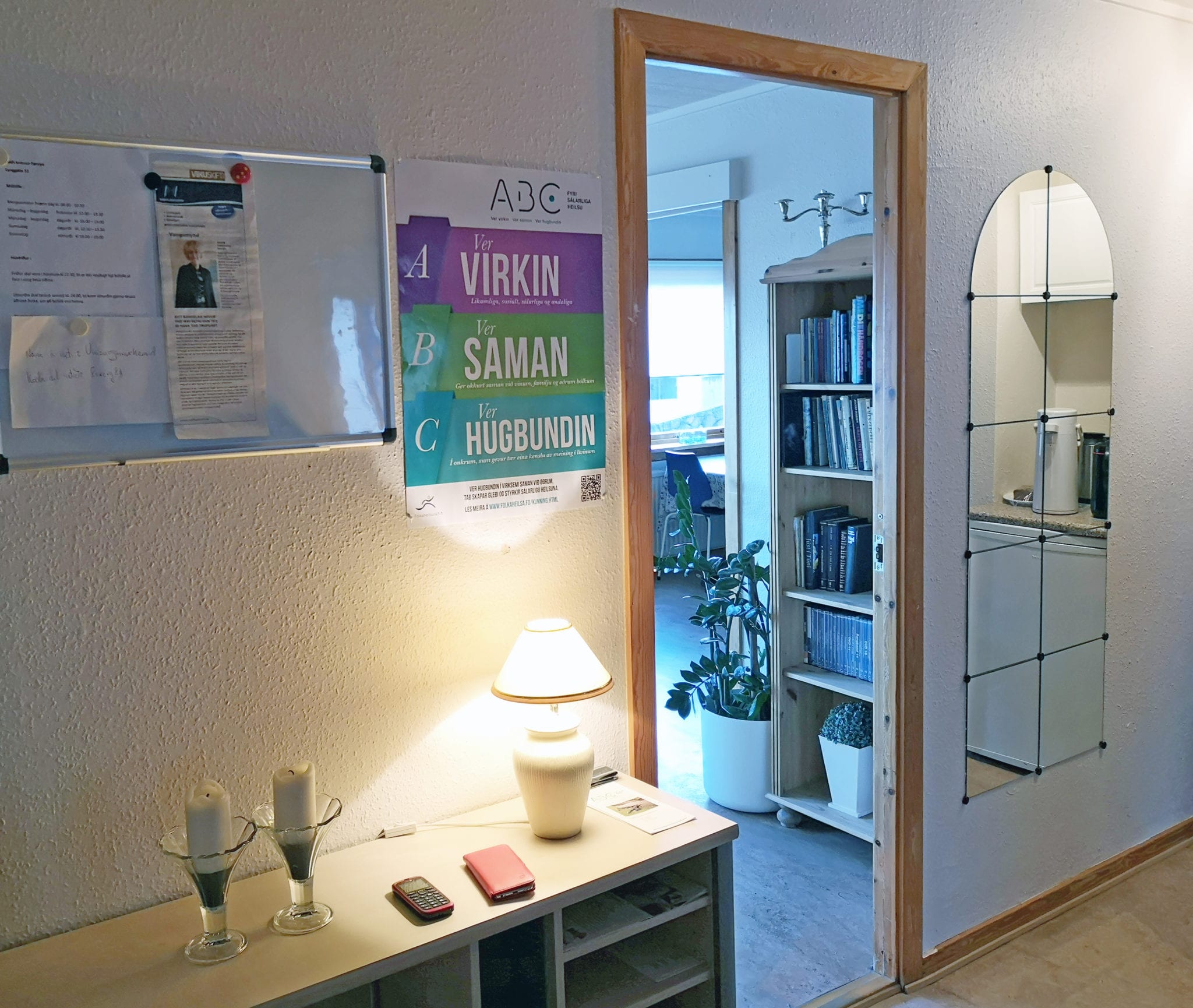 Endamálið við at hanga plakatirnar upp er, at gera fólk, bæði starvsfólk og tey, ið koma inn, varug við týdningin av at hugsa um egna sálarheilsu. Eisini er ein faldari um ABC verkætlanina og hendan kunnu starvsfólk og vitjandi taka við sær.