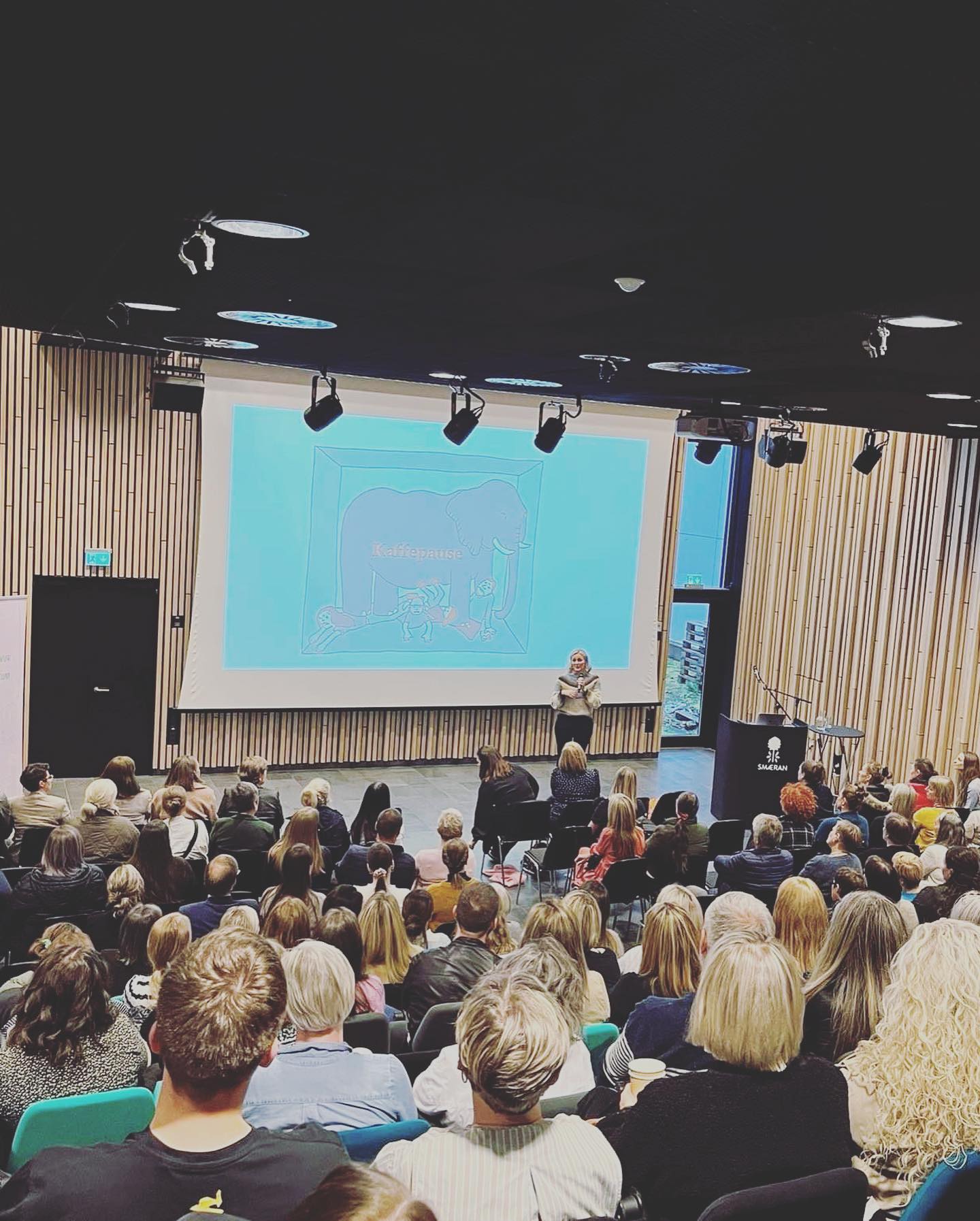 250 fólk møttu í gjárkvøldið í Smæruni, og harvið vóru tvey full høli av áhoyrarum, tá Katrine Quorning helt fyrilestur um sín “reyðvínsblettaða uppvøkstur”.